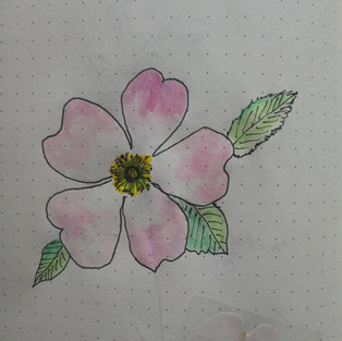 Pour la graminée et la fleur d'églantier, j'ai ajouté la vraie fleur ou simplement les pétales sur la page. J'en ferai peut-être d'autres sur ce principe de mélanger dessin et réel.